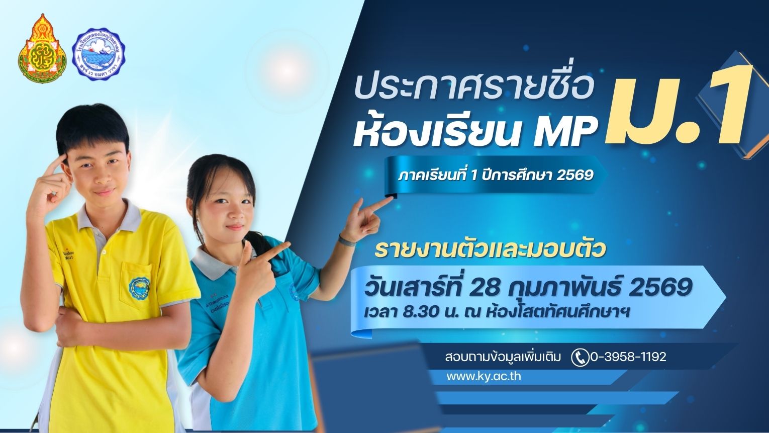 ประกาศรายชื่อผู้ผ่านการสอบเข้าศึกษาห้องเรียนพิเศษ (MP) ม.1 ปีการศึกษา 2569