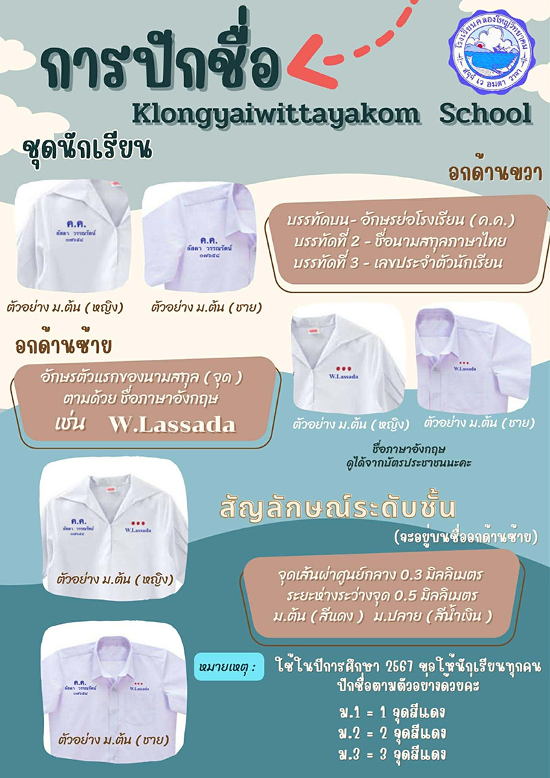 การปักชื่อชุดนักเรียน ม.ต้น