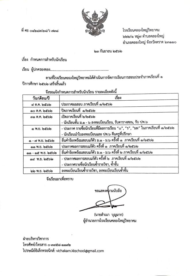กำหนดการแก้ไขผลการเรียนภาคเรียนที่ 1 ปีการศึกษา 2562