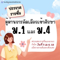 ประกาศรายชื่อผู้ผ่านการคัดเลือกศึกษาต่อในระดับ ม.1 และ ม.4 ปีการศึกษา 2568
