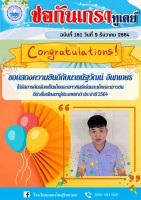 ฉบับที่ 161 (9 ธ.ค.64) ขอแสดงความยินดีกับนายนัฐวัฒน์ อินทเกษร เด็กและเยาวชนดีเด่น และเด็กและเยาวชนที่นำชื่อเสียงมาสู่ประเทศชาติ ปี 2564