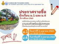 ประกาศรายชื่อนักเรียน ม.1 และ ม.4 (ห้องเรียนปกติ) ปีการศึกษา 2565