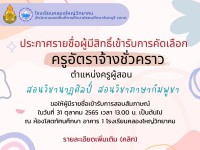 ประกาศรายชื่อผู้มีสิทธิ์เข้ารับการคัดเลือกครูอัตราจ้างชั่วคราว ตำแหน่งครูผู้สอนภาษากัมพูชา และครูผู้สอนนาฏศิลป์