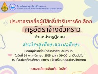 ประกาศรายชื่อผู้มีสิทธิ์เข้ารับการคัดเลือกตำแหน่งลูกจ้างชั่วคราว ทำหน้าที่นักการภารโรง