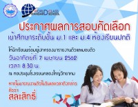 ประกาศผลการสอบคัดเลือกเข้าศึกษาระดับชั้น ม.1 และ ม.4 ห้องเรียนปกติ